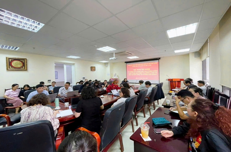 Ảnh: Đảng viên, viên chức và người lao động Viện Xã hội học và Tâm lý học lắng nghe GS.TS. Lê Văn Lợi, Ủy viên Ban Chấp hành Trung ương Đảng, Bí thư Đảng ủy, Chủ tịch Viện Hàn lâm Khoa học xã hội Việt Nam, Trưởng Ban Chỉ đạo 35 Đảng ủy Viện Hàn lâm phát biểu