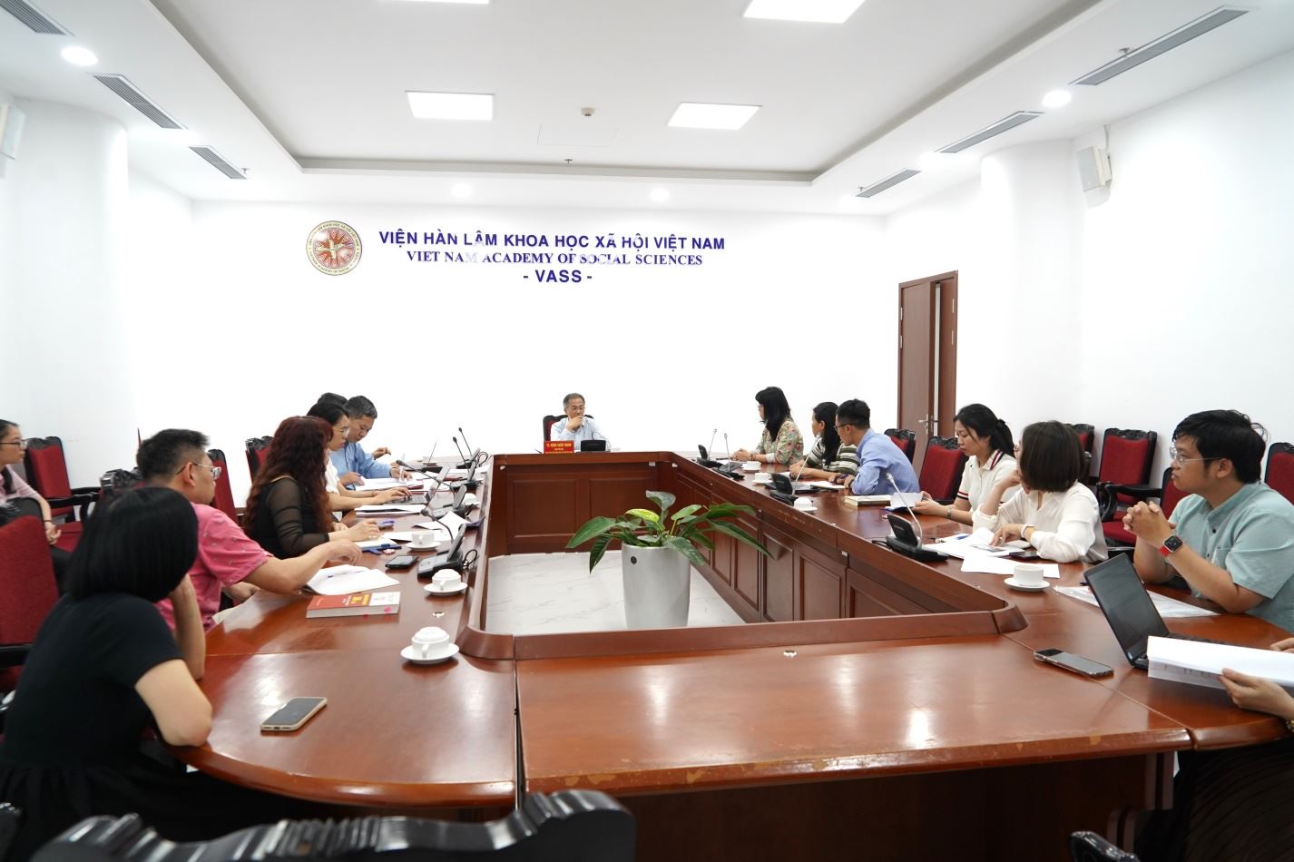 Tham dự buổi làm việc có; PGS.TS. Nguyễn Tài Đông, Viện trưởng Viện Triết học; TS. Nguyễn Thị Linh Giang, Phó Viện trưởng Viện Nhà nước và Pháp luật; PGS.TS. Phạm Minh Phúc, Phó Chánh Văn phòng Viện Hàn lâm cùng các cán bộ chuyên môn liên quan.