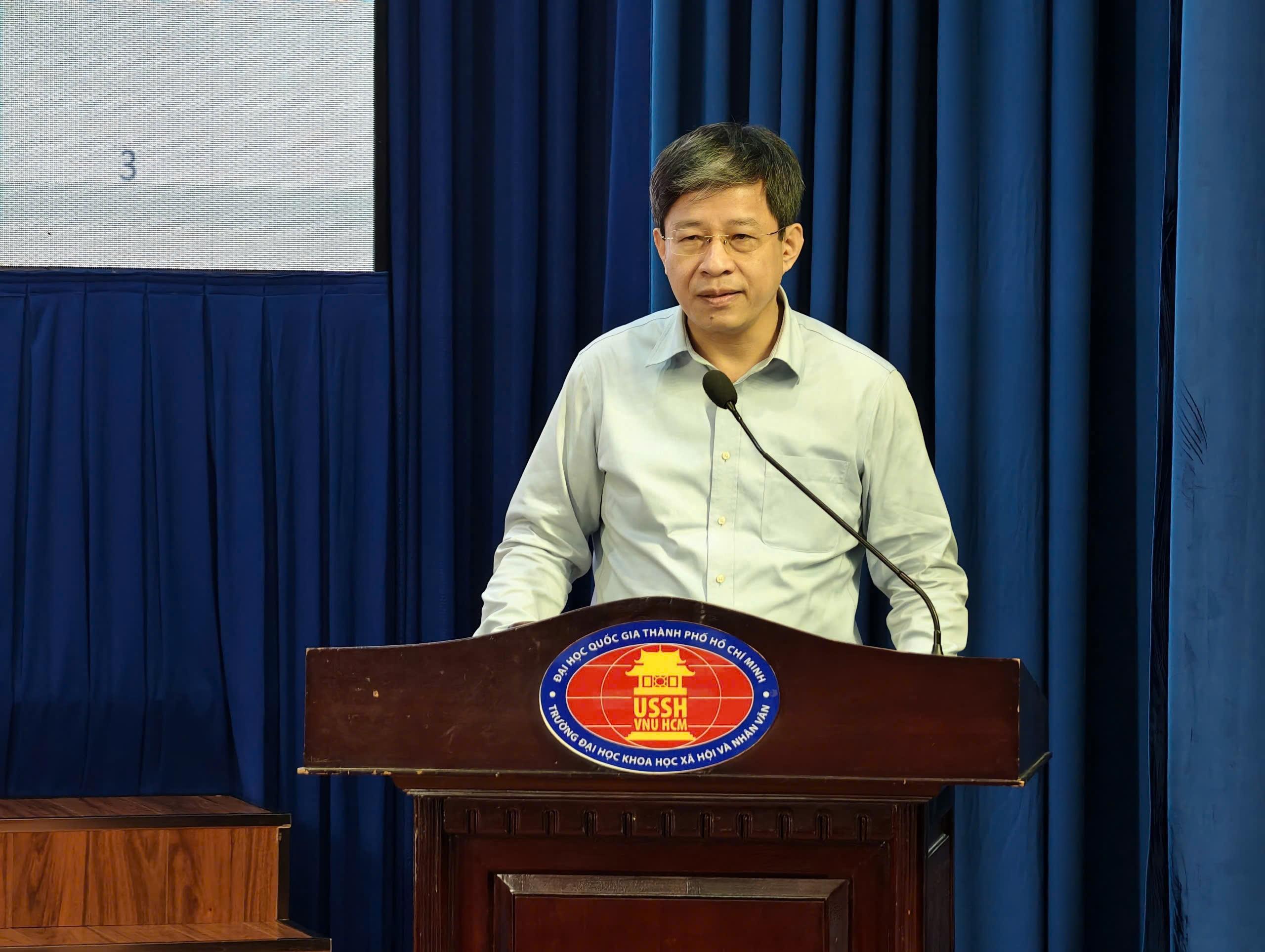 TS. Nguyễn Bùi Nam, Phó Chánh Văn phòng Viện Hàn lâm KHXH Việt Nam trình bày tham luận “Khoa học xã hội và nhân văn: Nền tảng trí tuệ cho sự nghiệp phát triển bền vững đất nước trong kỷ nguyên mới”tại Hội thảo